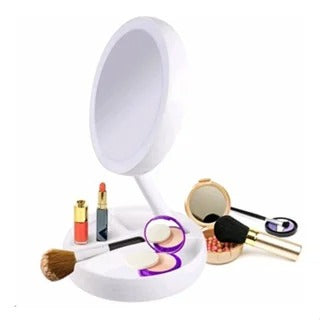 Espelho Com Led De Mesa Com Aumento 10x Led Luz Dobrável Para Maquiagem