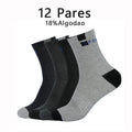 12 Pares, Meias Masculinas de Algodão, Respiráveis, Contendo Algodão, Meias Esportivas de Cano Médio, Verão, Secagem Rápida