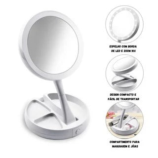 Espelho Com Led De Mesa Com Aumento 10x Led Luz Dobrável Para Maquiagem