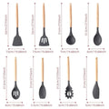 KIT Cozinha Conjunto com 12 peças Jogo de Utensilio Culinário cabo de Madeira Antiaderente